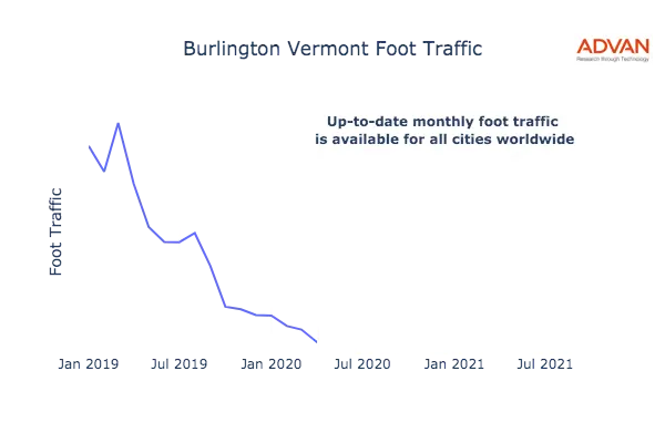 Up-to-date monthly foot traffic is available for all cities worldwide.