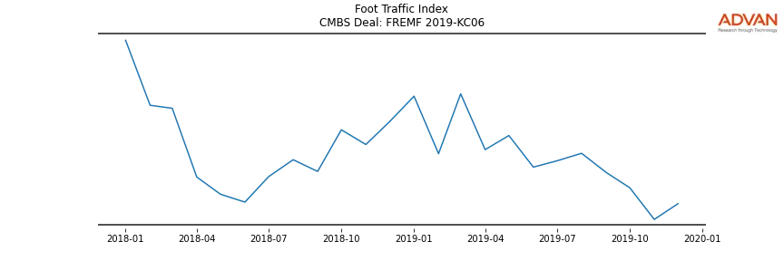 Advan Research computes accurate daily foot-traffic for all the properties and loans of the FREMF 2019-KC06 deal. Here is the foot-traffic aggregated across all the properties of the deal: