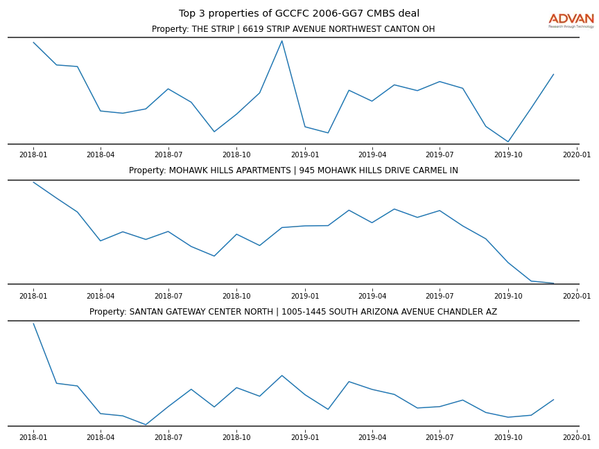 Advan Research computes accurate daily foot-traffic for all the properties and loans of the GCCFC 2006-GG7 deal. Here is the foot-traffic aggregated across all the properties of the deal:
