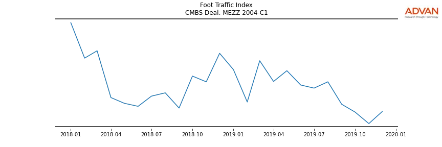 Advan Research computes accurate daily foot-traffic for all the properties and loans of the MEZZ 2004-C1 deal. Here is the foot-traffic aggregated across all the properties of the deal: