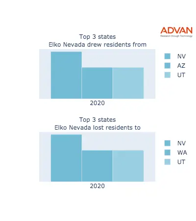 Elko saw a net negative (outbound) resident count flow. There were 35 residents moved out of the state.