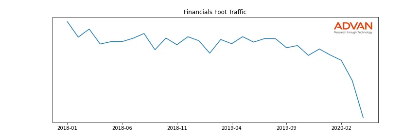 Quick Cash Pawn along with another 150 companies belongs to the Advan Financials. The following chart shows the foot traffic index on this sector.