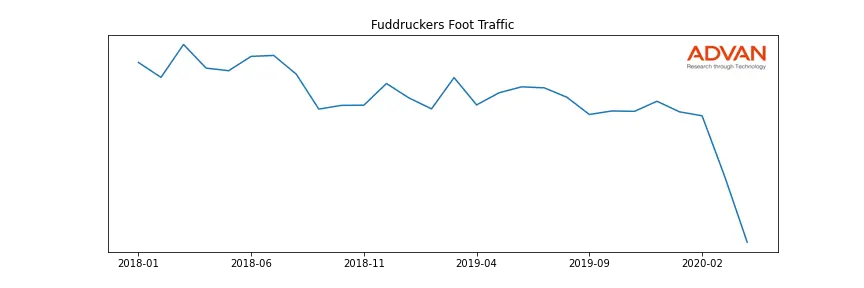 Fuddruckers along with another 1766 companies belongs to the Advan Consumer Discretionary. The following chart shows the foot traffic index on this sector.