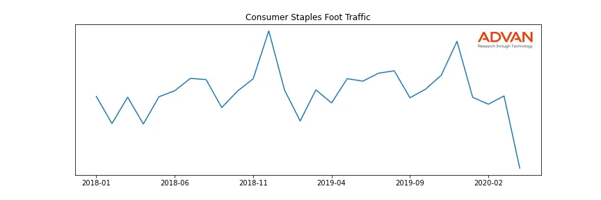 Sanderson Farms, Inc. along with another 360 companies belongs to the Advan Consumer Staples. The following chart shows the foot traffic index on this sector.