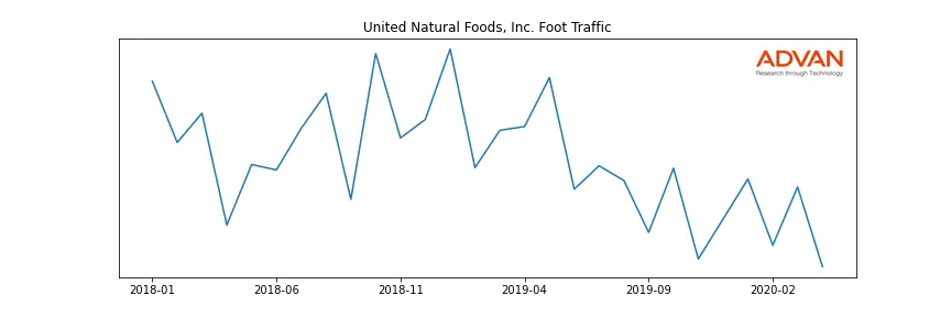United Natural Foods, Inc. along with another 360 companies belongs to the Advan Consumer Staples. The following chart shows the foot traffic index on this sector.
