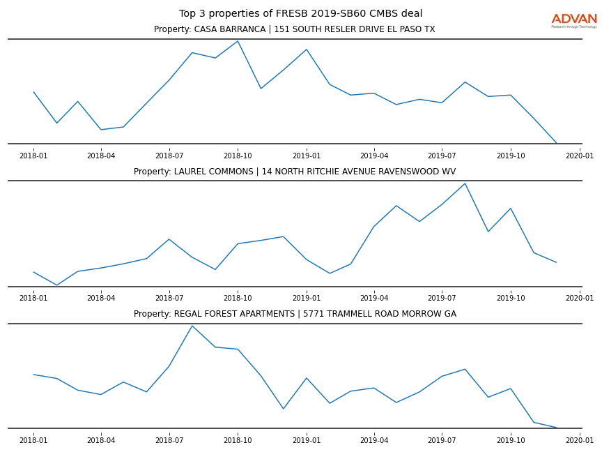 Advan Research computes accurate daily foot-traffic for all the properties and loans of the FRESB 2019-SB60 deal. Here is the foot-traffic aggregated across all the properties of the deal: