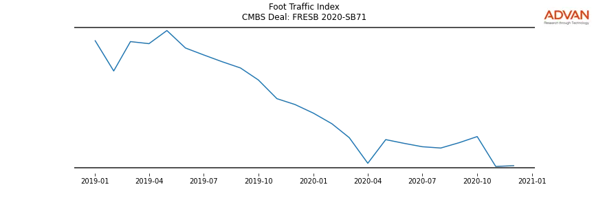 Advan Research computes accurate daily foot-traffic for all the properties and loans of the FRESB 2020-SB71 deal. Here is the foot-traffic aggregated across all the properties of the deal: