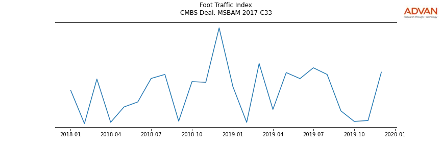 Advan Research computes accurate daily foot-traffic for all the properties and loans of the MSBAM 2017-C33 deal. Here is the foot-traffic aggregated across all the properties of the deal:
