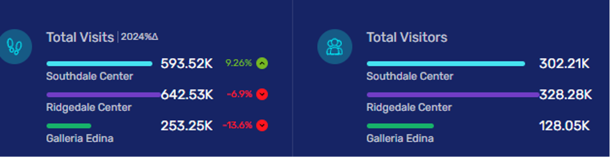 · Visits were up +11% this holiday season (Nov + Dec). Even consumer spend at Southdale’s legacy retailer Macy’s was strongly up (+17%), outperforming other comparable Macy’s locations in the market.