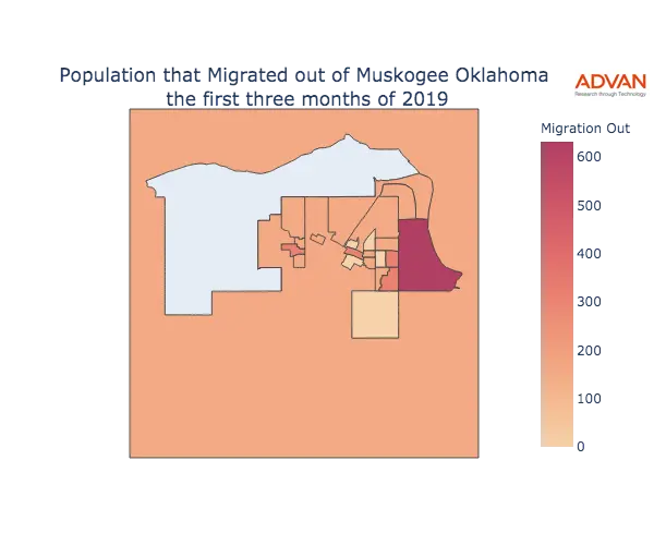 The map below shows the migration into Muskogee by Census Block Group (CBG).