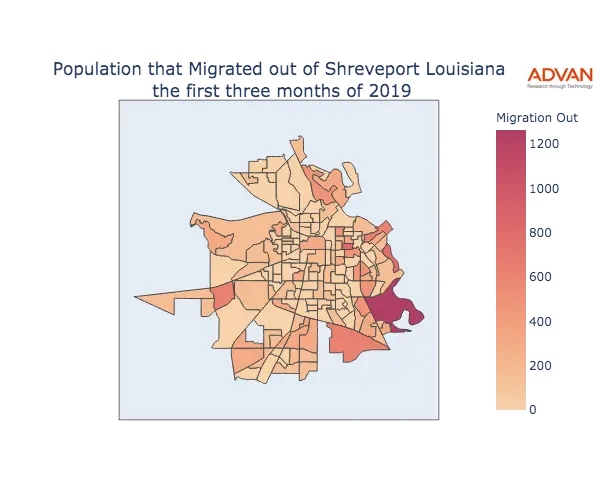 The map below shows the migration into Shreveport by Census Block Group (CBG).