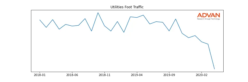 Ameren Corporation along with another 34 companies belongs to the Advan Utilities. The following chart shows the foot traffic index on this sector.