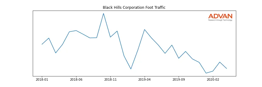 Black Hills Corporation along with another 34 companies belongs to the Advan Utilities. The following chart shows the foot traffic index on this sector.