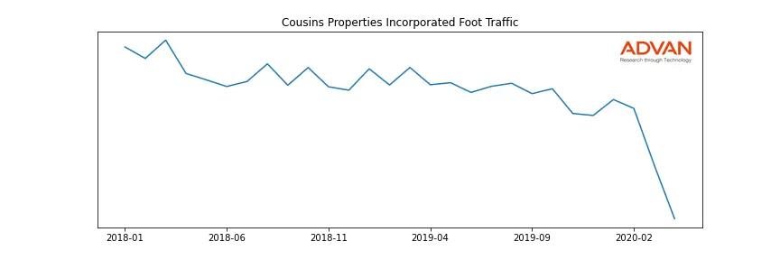 Cousins Properties Incorporated along with another 180 companies belongs to the Advan Real Estate. The following chart shows the foot traffic index on this sector.