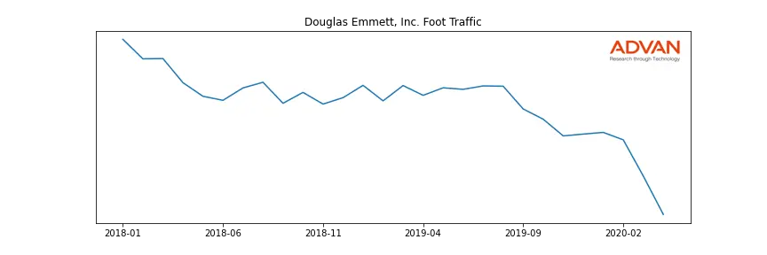 Douglas Emmett, Inc. along with another 180 companies belongs to the Advan Real Estate. The following chart shows the foot traffic index on this sector.