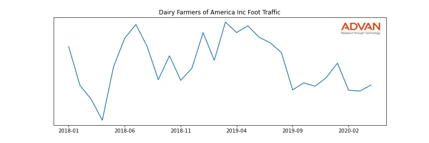 Dairy Farmers of America Inc along with another 22 companies belongs to the Advan Consumer Non-Durables. The following chart shows the foot traffic index on this sector.