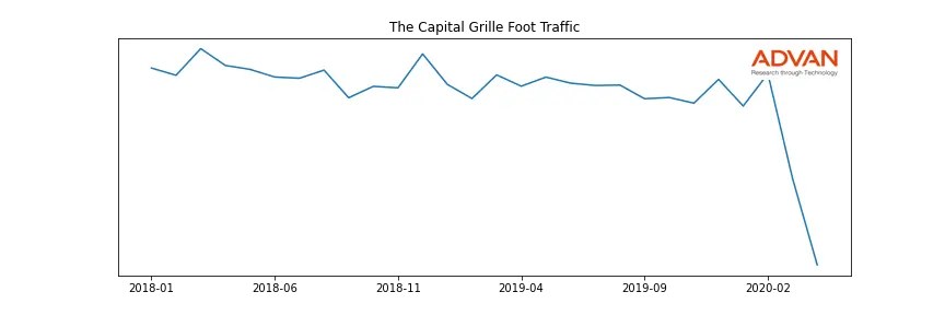 The Capital Grille along with another 1766 companies belongs to the Advan Consumer Discretionary. The following chart shows the foot traffic index on this sector.