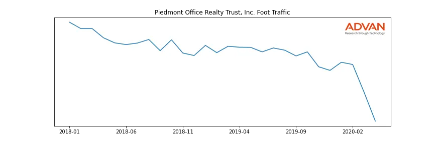 Piedmont Office Realty Trust, Inc. along with another 180 companies belongs to the Advan Real Estate. The following chart shows the foot traffic index on this sector.