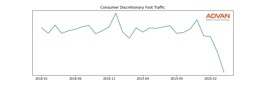 Pandora along with another 1766 companies belongs to the Advan Consumer Discretionary. The following chart shows the foot traffic index on this sector.