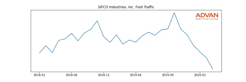 SIFCO Industries, Inc. along with another 301 companies belongs to the Advan Industrials. The following chart shows the foot traffic index on this sector.