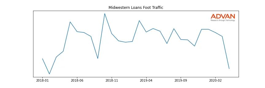 Midwestern Loans along with another 150 companies belongs to the Advan Financials. The following chart shows the foot traffic index on this sector.