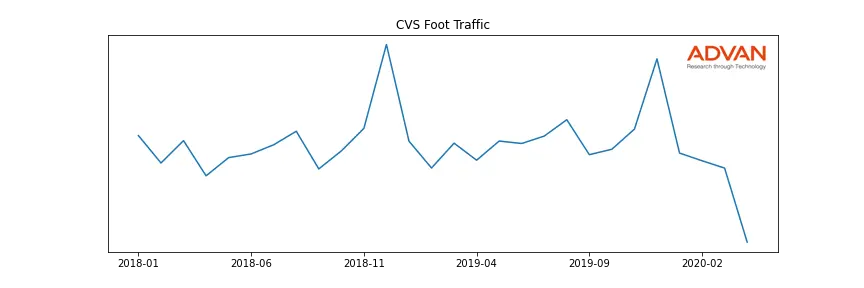 CVS along with another 144 companies belongs to the Advan Health Care. The following chart shows the foot traffic index on this sector.